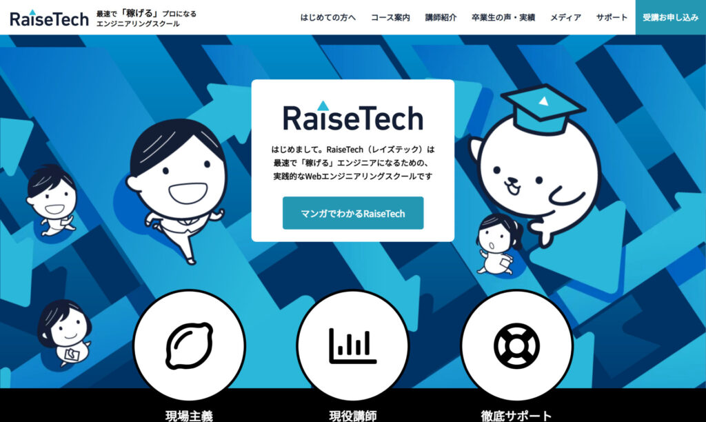 オンラインスクールRaiseTech様のWordPress副業コース課題:RaiseTechs様の旧サイト模写